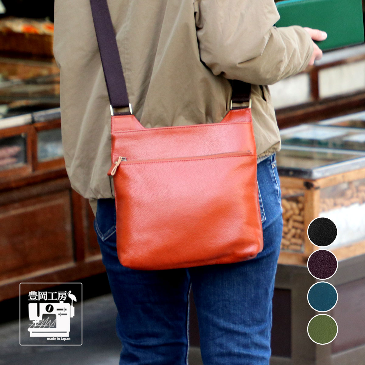 「鞄の街」豊岡の本革ショルダー 「古事記」にも登場する、柳細工の技術をルーツとする兵庫県豊岡市の鞄。 その高度な技術を現在に受け継いでいる豊岡の地での生産にこだわる「豊岡工房」。 ソフトで柔らかな牛革シュリンク素材を使用した斜め掛けショルダーバッグです。 ・厚めの心材を使用した体にフィットする形状。そしてシュリンク素材の牛革はキズが目立ちにくい特徴があります。 ・メイン開口部のファスナー引手はループ...[詳細を見る]