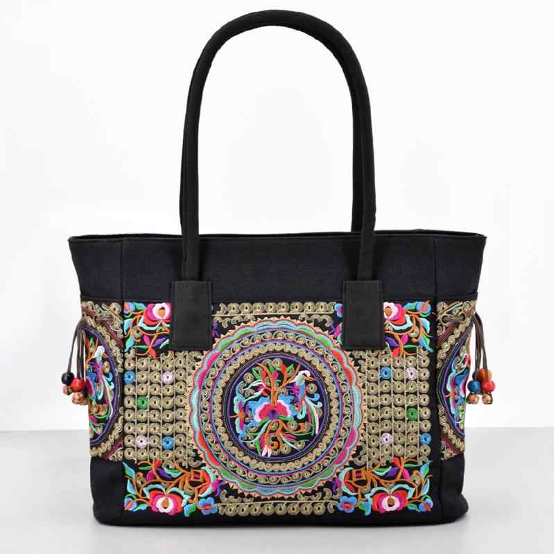 ・カラー: 金銭花柄・スタイル: 文芸国風・主な素材: 帆布・裏地素材: ポリエステル・バッグ形状: 横長スクエア型・サイズ: XL、超大型・開閉方法: ファスナー式・内側構造: ファスナーポケット、携帯ポケット、証明書入れ・外側ポケット: オープンポケット・硬さ: やや硬め・ショルダーストラップ: ダブル・要素: 編み込み、ビーズ、刺繍、花柄、ステッチ、フリンジ・適用シーン: 日常使い[詳細を見る]