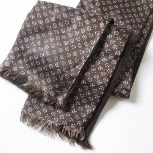 美品 総柄×無地ウール系 リバーシブル ストール シルク系 チューブ D151【中古】【古着】【メンズ】【通...