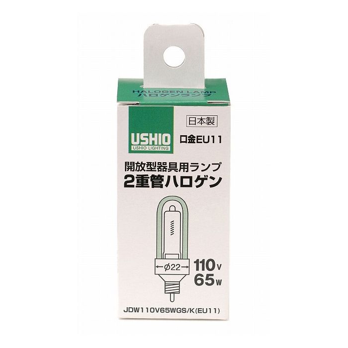 【商品詳細】定格:・電圧110V・消費電力 65W・寿命:約2,000時間本体サイズ:・全長:75mm・バルブ径:18mm・口金:EU11入数:1個全光束:1050lm2重管型ハロゲン2重構造により、安全性がさらに向上。器具の前面ガラスが不要で、取り替え、メンテナンスも容易です。【送料について】北海道、沖縄、離島は送料を頂きます。[詳細を見る]