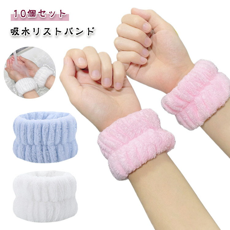 リストバンド吸水リストバンド大人アームバンド洗顔10個セット吸水バンド可愛いシュシュふわふわ袖濡れ...