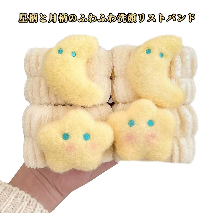 手首バンド 2個セット レディース 月柄 2個セット 袖濡れ防止 星柄 ふわふわ 洗顔時便利 洗顔用 吸水 タ...