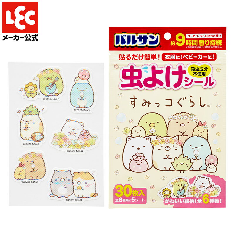 ★商品特徴★ ●虫の嫌がる天然精油を配合したシールです。殺虫成分は含みません。 ●服、身のまわり品に貼るだけの虫よけ。 ●さわやかなユーカリ、シトロネラの香りです。 ●約9時間香りが持続します。(使用環境により効果が異なります。) ●すみっコぐらしに登場するキャラクターのイラストが6種類入っています。 ★商品詳細★ 適用害虫:ユスリカ 成分:ユーカリオイル、シトロネラオイル、他 内容量:30枚(6枚×5シート)[詳細を見る]