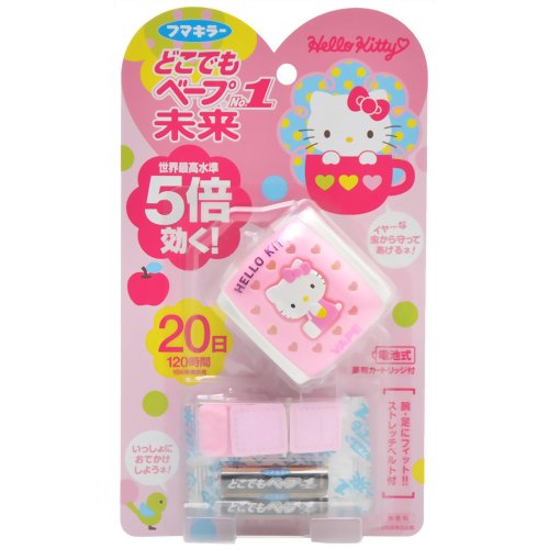 【フマキラー どこでもベープ 携帯 虫よけ NO.1未来セット ハローキティの商品詳細】 ●5倍効果※! 屋外でも優れた効果を発揮!※初代どこでもベープNo.1と比較 ●安心の品質! 煙も熱も出ない。コンセントがいらないので玄関や子供の手の届かない棚の上などに置いて使える ●超小型で携帯に便利! 腕や足首などにフィットするストレッチベルト付き。腰やベビーカーにも吊り下げられる ●従来器具にも使える! 従来品「どこでもベー...[詳細を見る]
