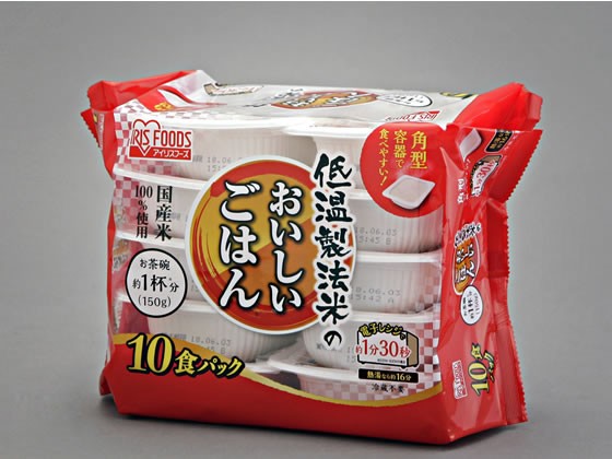精米時にお米のおいしさを引き出す低温製法米を使用。 精米直後のお米を同じ工場内ですぐに炊き上げるから搗きたてのお米のおいしさをそのままパックご飯に。 PH調整剤を使用しないため、食味を損ないません。●軽減税率8% 【仕様】 ●原材料:うるち米(国産) ●栄養成分表示:1食(150g)あたり:エネルギー216kcal、たんぱく質3.5g、脂質0.7g、炭水化物49.1g、食塩相当量0g ●内容量:150g ●注文単位:1パック(150g×10食)...[詳細を見る]