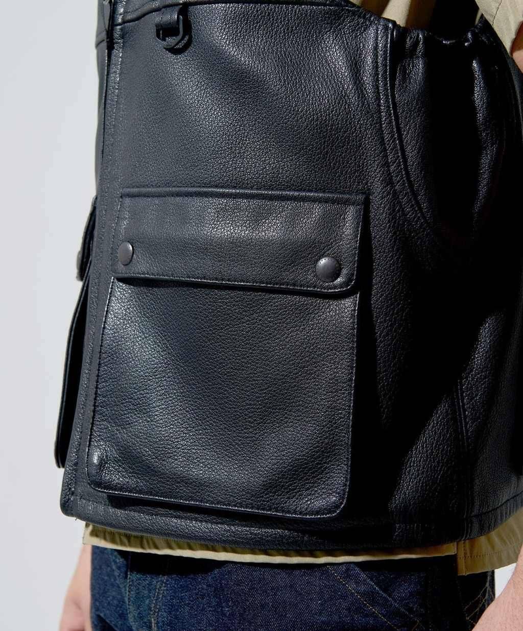 ■商品概要カラー:ブラックサイズ:FREE【素材】表:ゴートスキン(山羊革)裏:ナイロン100%ショルダーベルト:ポリプロピレン100%【商品特徴】・バッグになる2WAY仕様・ユニセックス生産国;中国【サイズスペック】バスト:118.0裾回り:118.0着丈:40.0前中心丈:40.0バッグ状態/ 縦:32.0バッグ状態/ 横:58.0ショルダーベルト:29.0-50.0■詳細説明自由なサイジングと、驚きの変形ギミックを備えたレザーベストです。ざっ...[詳細を見る]