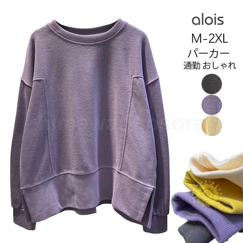 トレーナー レディース スウェット アウター スリット 体型カバー 長袖 プルオーバー トップス 無地 ゆ...