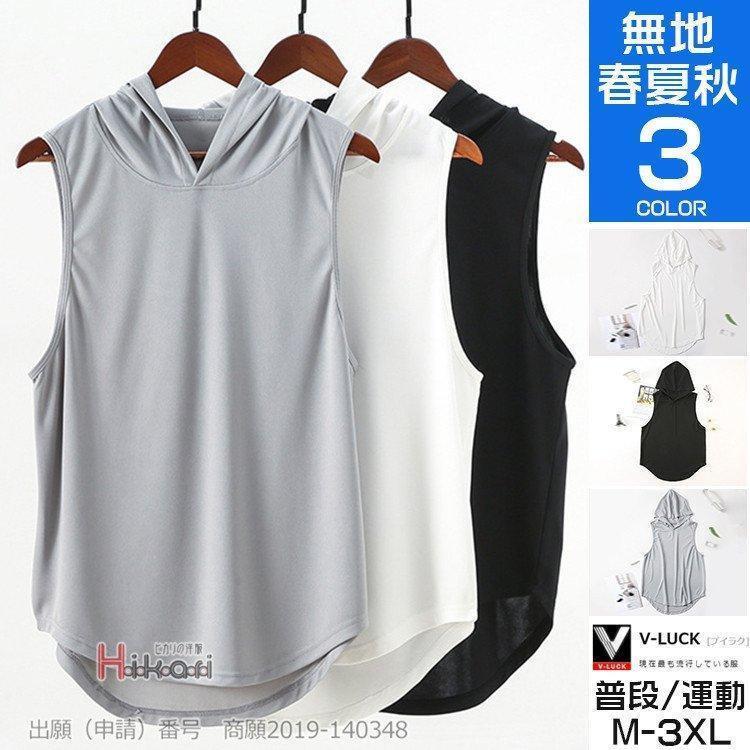 ノースリーブ パーカー メンズ 夏 2枚セット タンクトップ おしゃれ メッシュ スポーツ 無地 通気 父の日