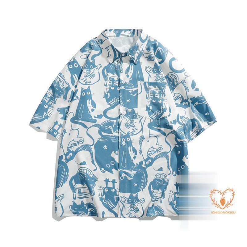 かりゆし アロハシャツ メンズ 半袖シャツ 猫模様 大きいサイズ 柄シャツ 夏 サマー ポケット ユニセッ...