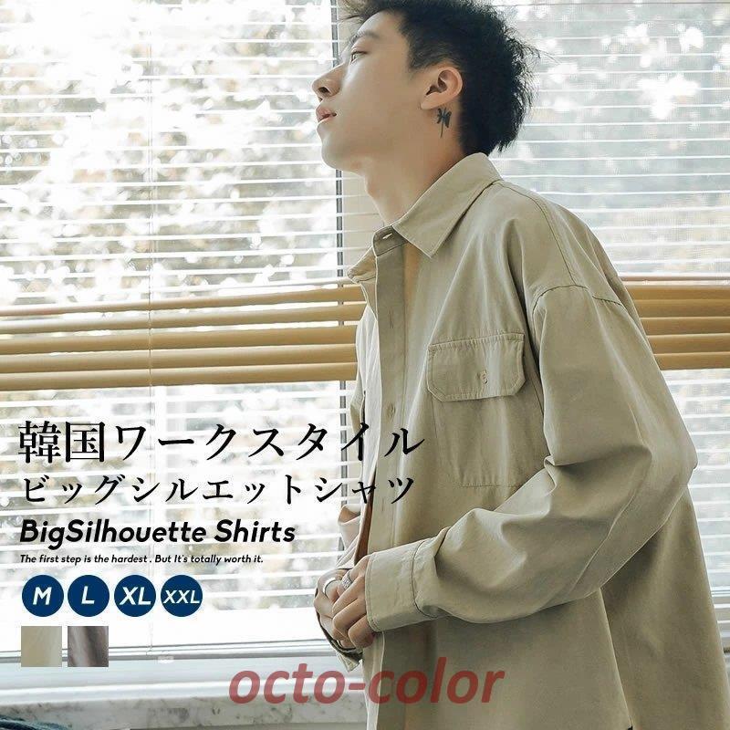 オーバーサイズ ワークシャツ メンズ 長袖 ビッグシルエット ゆったり おしゃれ ストリート系 韓国ファ...