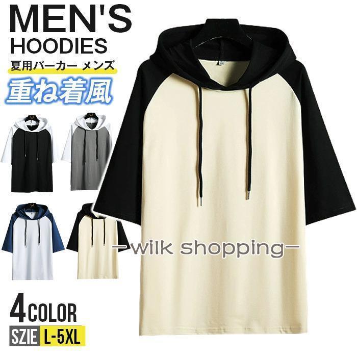 夏用パーカー メンズ 五分袖 サマーパーカー 切り替え 半袖 プルオーバー パーカ フード付き スポーティ 重ね着風 ストリート トップス プルオーバーパーカー ラグランスリーブ 薄手 夏服 夏パーカー【】esyxz805【カラー】ホワイトブラックグレーベージュ【サイズ】LXL2XL3XL4XL【素 材】ポリエステル、綿※サイトに掲載されている商品は、モニター環境により実際のものと素材感、色が若干異なって見える場合がございます。※機...[詳細を見る]