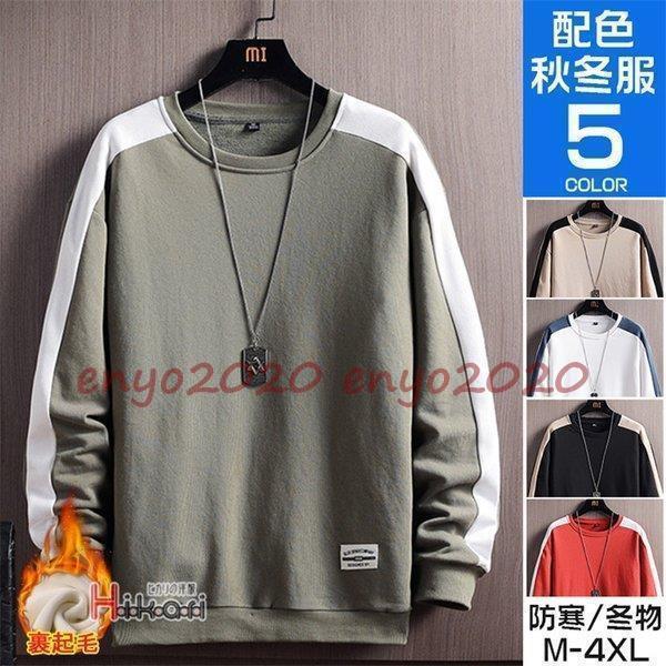 トレーナー メンズ スウェット 裏起毛 ボアトレーナー クルーネック スウェット カラー配色 防寒 あった...