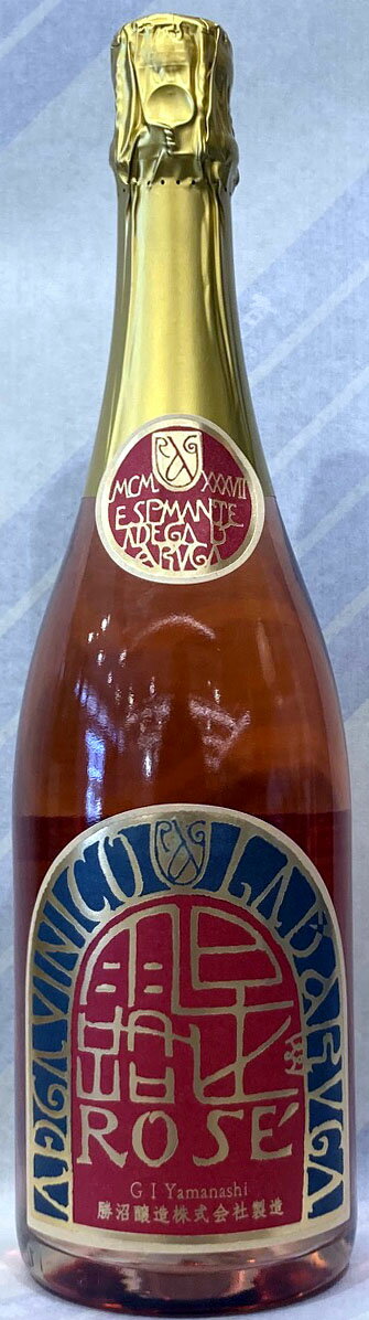 山梨県甲州市勝沼町 勝沼醸造 マスカット・ベリーA100% 山梨県産のマスカット・ベリーAをフレンチオーク樽で発酵させ、更に一本一本を瓶内で二次発酵させる伝統的な製法による本格ロゼスパークリングワインです。 やや濃い目の色合いは、ぶどう本来の成分を大切にすることにより、前菜からメイン料理まで幅広く合わせることができます。 果実の豊かな甘い香りと芳醇かつ繊細な味わいが心地よく口中のバランスが絶妙です。 実...[詳細を見る]