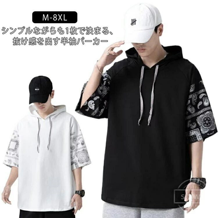 シンプルながらも1枚で決まる、抜け感を出す半袖パーカー。機能性ありフード付き、袖はペイズリー切り替えデザインが、一枚で重ね着に見える。8XLまで!ゆったりビッグシルエットが最旬のスタリング完成。柔らかくて肌触りがいい素材を使い、よい着心地に仕上がりました。カジュアルパンツとあわせやすく、どんなシーンもオシャレに着回し自在! サイズ M L XL 2XL 3XL 4XL 5XL 6XL 7XL 8XL サイズについての説明 詳しくは写真...[詳細を見る]