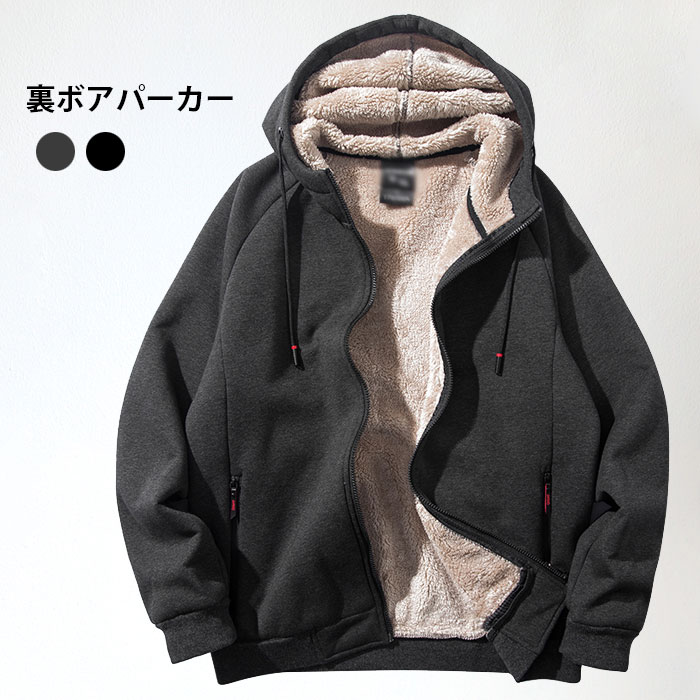 ITEM INFORMATION カジュアルなフード付き裏ボアパーカー お洒落ながらも防寒対策 便利なサイドポケット付き仕様が嬉しい コーデに合わせやすいベーシックな2カラー展開 ●おすすめポイント 《1》もこもこ裏ボアで、内側からポカポカ 《2》頭まで暖かく守ってくれるフード付きタイプ 《3》袖口も裾もリブ仕様で、体にフィットし防風機能アップ サイズ展開 L 【cm】着丈:69 バスト:112 袖丈(フードから):65 裾周り:94 X...[詳細を見る]