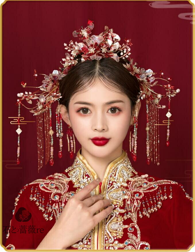 チャイナ風髪飾り コスプレ髪飾り ヘアアクセサリー7点セット 中華グッズ 中国古代宮廷皇后貴妃風王冠 ...
