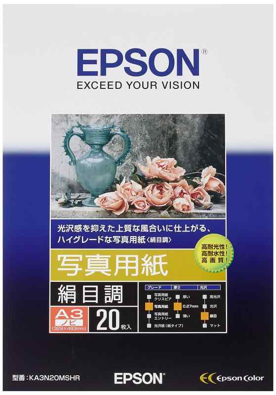 エプソン コピー用紙 写真用紙 絹目調 20枚 A3ノビ KA3N20MSHR<b>メーカー型番 :</b> KA3N20MSHR<b>入り数 :</b> 20枚<b>サイズ :</b> A3ノビ (329*483mm)<b>坪量 :</b> 255g/m2<b>厚み :</b> 0.27mm[詳細を見る]