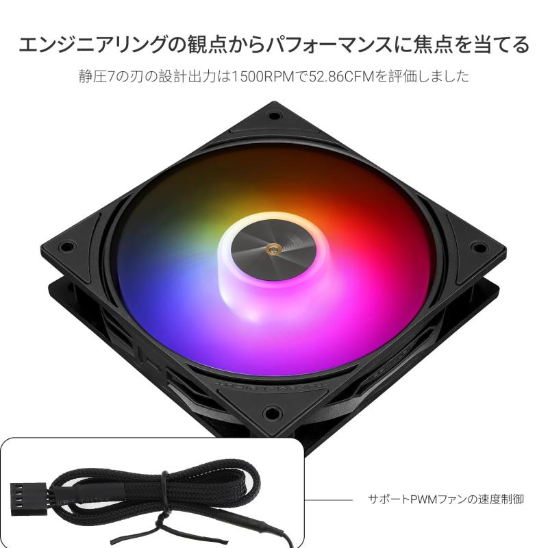 Thermalright TL-P12-S 120mm CPU放熱ファン風圧、PWMインテリジェント温度制御、22.1デシベル以下の低騒音、黒ARGBランプ効果のシャーシ静音ファン、シャーシ、CPU放熱器、水冷放熱器に適用【静音ファンの寸法】 サイズ:120 * 120 * 25mm、速度:1500RPM ± 10%、ノイズ≤22.1dBAコネクタ:4ピンpwm、風圧:1.53mm H2O、気流:52.86CFM(MAX)、冷却性能を向上させるためのより高い風量。【高性能冷却ファン】マザーボードの温度に応じ...[詳細を見る]
