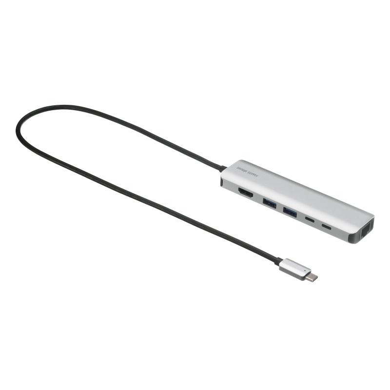 サンワサプライ ドッキングステーション USB-C 6in1 4K/120Hz・8K/30Hz HDMI/有線LAN/USB-A×2 / USB-C×2(1ポート PD給電用) / PD100W入力 / 50cmケーブル / L字変換付 USB-DKM9SType-Cケーブル1本でHDMIディスプレイやUSB機器、有線LANの拡張接続ができるType-Cモバイルドッキングステーションです。Type-Cケーブル1本の接続で、大画面ディスプレイとUSBデバイスを快適に操作し、外出や会議など移動時にはType-Cケーブル1本を抜...[詳細を見る]
