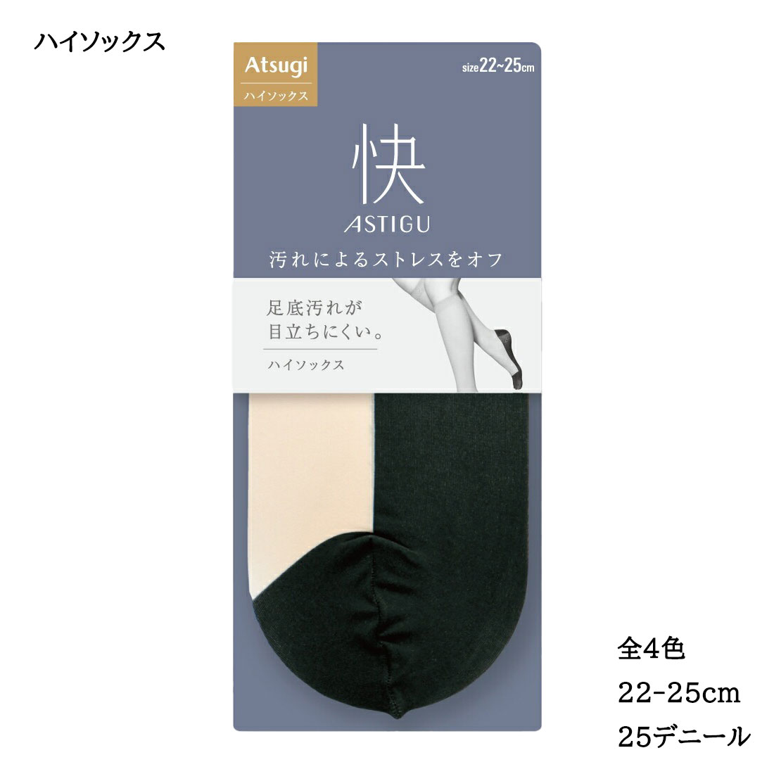 :.☆*.:*: ★ :.☆*.:*: :.☆*.:*: :.☆*.:*: ★ :.☆*.:*: :.☆*.:*: :.☆*.:*:★ :.☆*.:*: ASTIGU 快 ハイソックス 汚れによるストレスをオフ。 足底汚れが目立ちにくい。 【メール便送料無料の2足セットはコチラ】 ・【2足セット】ASTIGU【快】ハイソックス ★商品仕様★ サイズ: 22-25cm カラー: ベージュ系4色 素 材: ナイロン・ポリウレタン 原産国: 中国 特 徴: 25デニール相当 足底黒原着糸切り替え疑似フットカバー ...[詳細を見る]