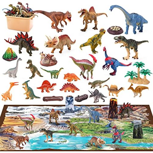 【40点セット内容】大きな恐竜フィギュア9セット(ティラノサウルス、トリケラトプス、パラプロクトサウルス、シトサウルス、ブラキオサウルス、スピノサウルス、パキケファロサウルス、ステゴサウルス、アロサウルス)、ミニ恐竜12セット、大きなプレイマット、火山、木、恐竜の卵、石、3シーンシミュレーション段ボール、収納ボックスが付属していますので、子供たちが恐竜の冒険を始めるのに役立ちます! 【プレイマット付き】...[詳細を見る]