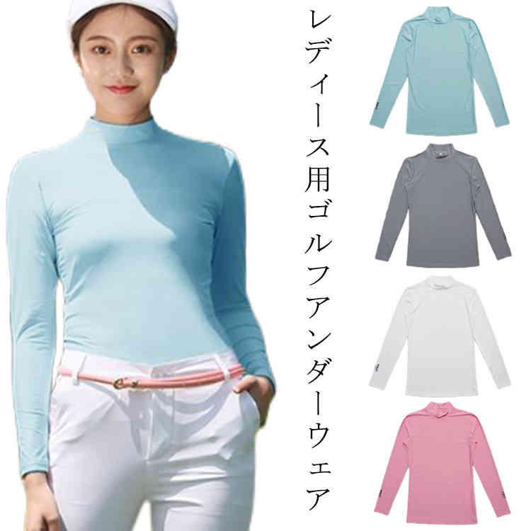 ゴルフウェア インナーシャツ 長袖 ハイネック ゴルフシャツ レディース ラッシュガード 大きいサイズ ...