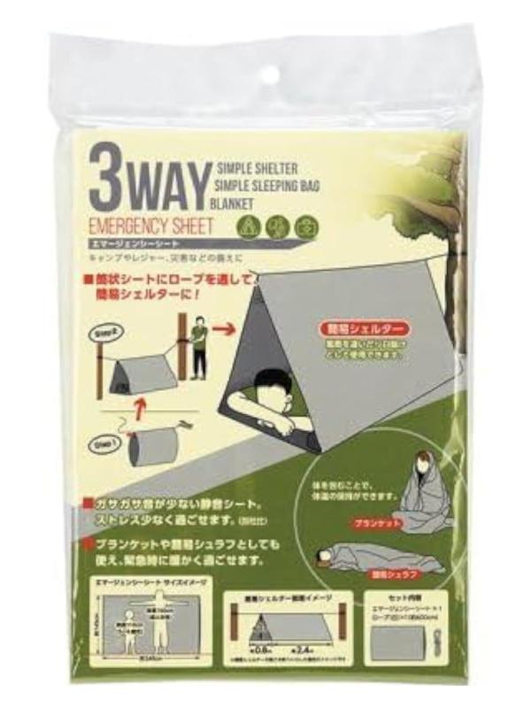非常事隊(ひじょうじたい) 3WAYエマージェンシーシート HJT-10筒状シートにロープを通して、簡易シェルターにガサガサ音が少ない静音シート。ストレス少なく過ごせます。ブランケットや簡易シェルフとしても使え、緊急時に暖かく過ごせます。簡易シェルター)雨風を防いだり日除けとして使用できます。ブランケット・簡易シェルフ)体を包むことで、体温の保持ができます。[詳細を見る]
