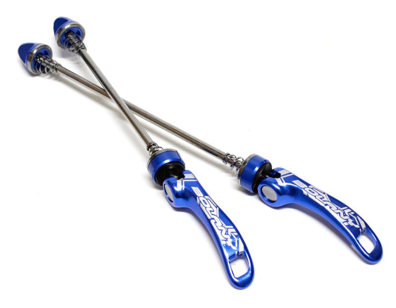 クイックレリーズ MTB ロードバイク サイクリング車 フロント・リアセットクイックレリーズはクイックリリース、クイックレバーとも呼ばれますが同じものです。車輪を取っ手付きナットを手で回して着脱していた20世紀初頭、カンパニョーロ氏によって世に送り出されました。この発明により、ナットを回す動作から、レバーを倒すだけで車輪の着脱がすばやくできるようになりました。多段ギア、リアディレイラーなどのパーツ類はさ...[詳細を見る]