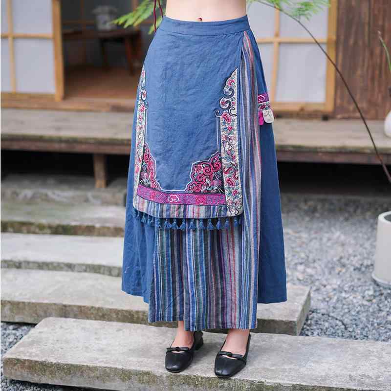 ・カテゴリ: スカート・スタイル: 中国風レトロ・主な素材: 綿麻 (綿51-70%)・柄: 花柄・加工: 刺繍・スカートシルエット: Aライン・スカート丈: ロング・カラー: ブルー・サイズ: フリーサイズ[詳細を見る]