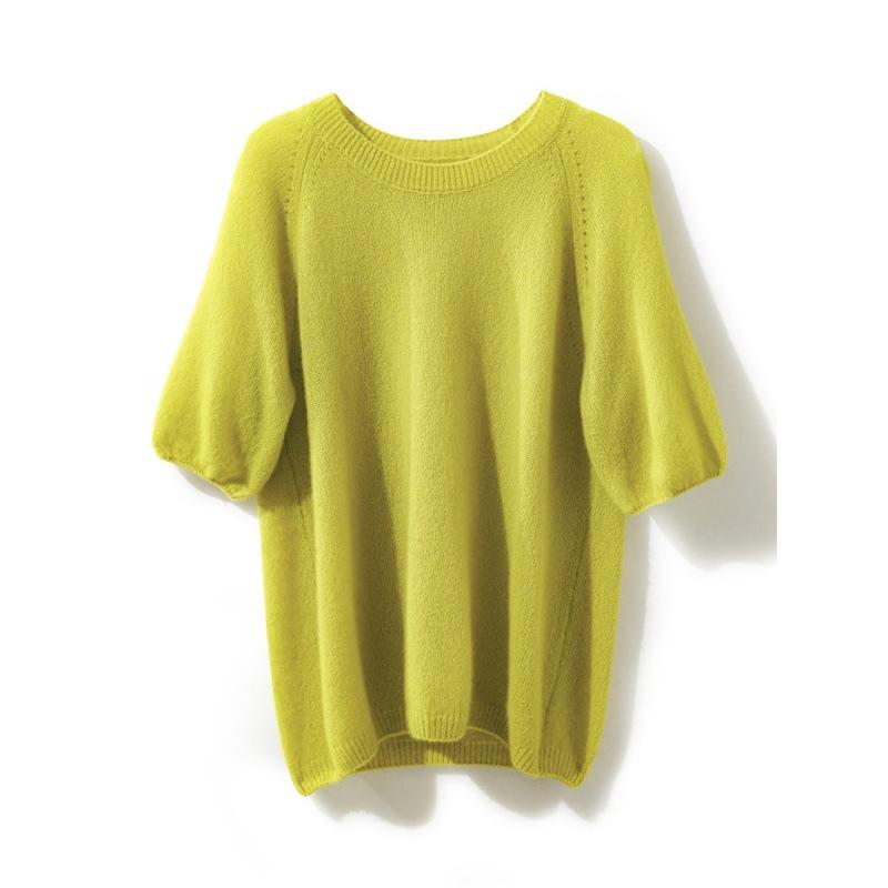 ・カテゴリ: セーター・スタイル: プルオーバー、通勤、エレガント・主な素材: 70〜80%未満・その他素材: 30%以下・ネックライン: クルーネック・袖丈: 5分袖・袖タイプ: ラグランスリーブ・柄: 無地・厚さ: 薄手・着丈: 普通丈・製法: ニット・シルエット: ゆったり・カラー展開: ホワイト、ターコイズブルー、ライトグレー、カーキグリーン、ライトパープル、サクラピンク・サイズ展開: ワンサイズ・性別: 女性[詳細を見る]