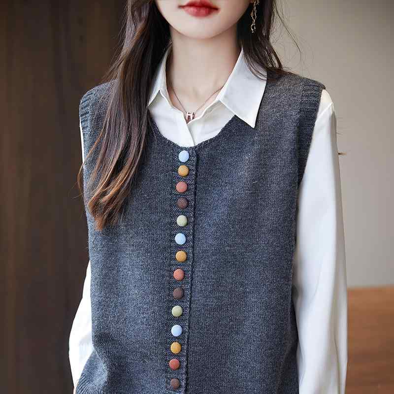 ニットベスト レディース 丸首 プルオーバー ウール混紡 レトロ 配色 無地 トップス 重ね着 通勤 ブラック ベージュ グレー レッド M L・項目名: スタイル ・値: 通勤 ・項目名: 着丈 ・値: 普通(50cm超~65cm以下) ・項目名: ネックライン ・値: ラウンドネック ・項目名: 柄 ・値: 無地 ・項目名: 素材 ・値: ニット ・項目名: 主素材 ・値: ウール ・項目名: カラー ・値: ブラック, ベージュ, グレー, アンコラレッド ・項...[詳細を見る]