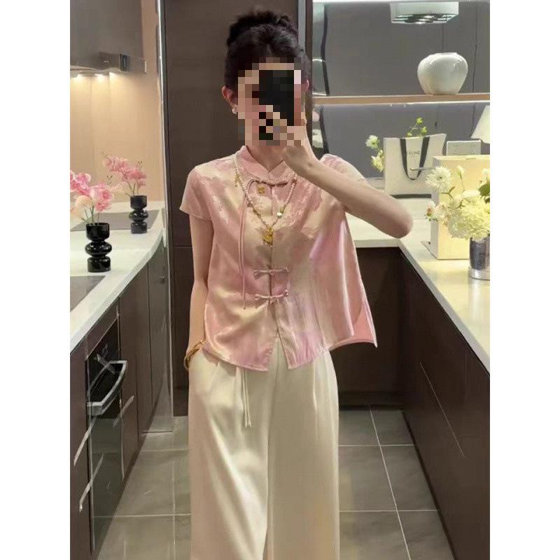 チャイナドレス レディース 上下セット 唐装 トップス ワイドパンツ 中国風 綿95%以上 春夏 エレガント[詳細を見る]