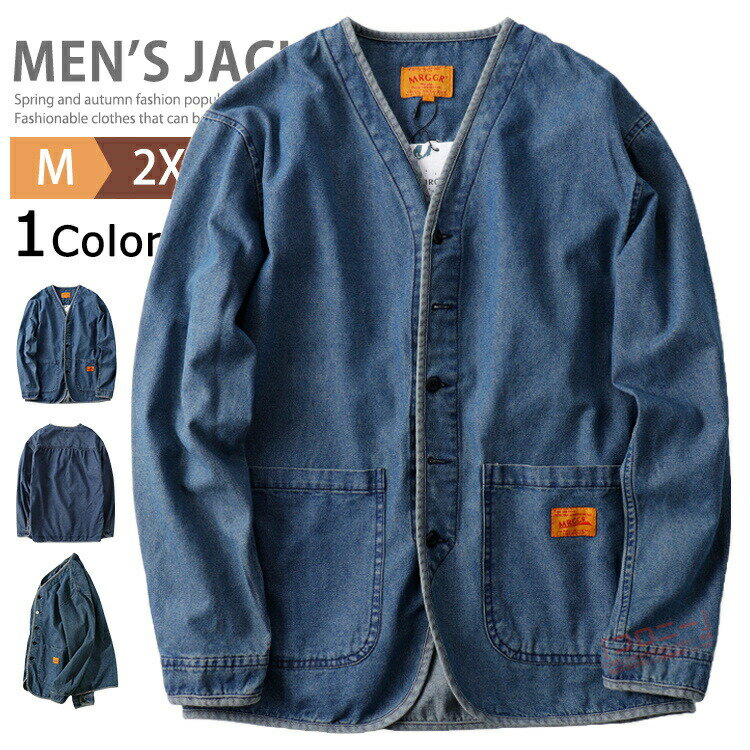 デニムジャケットメンズVネックGジャンジージャンデニムノースリーブジャケット綿100%春秋アウターブル...