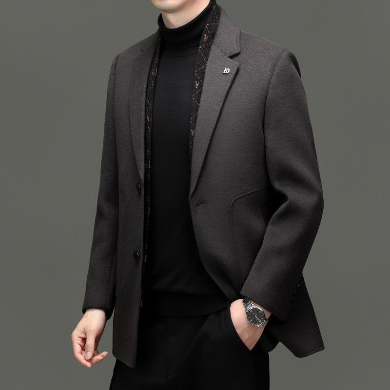 ジャケット メンズ 秋冬 厚手 ウール調 ポリエステル素材 スリムフィット テーラードカラー シングルブ...