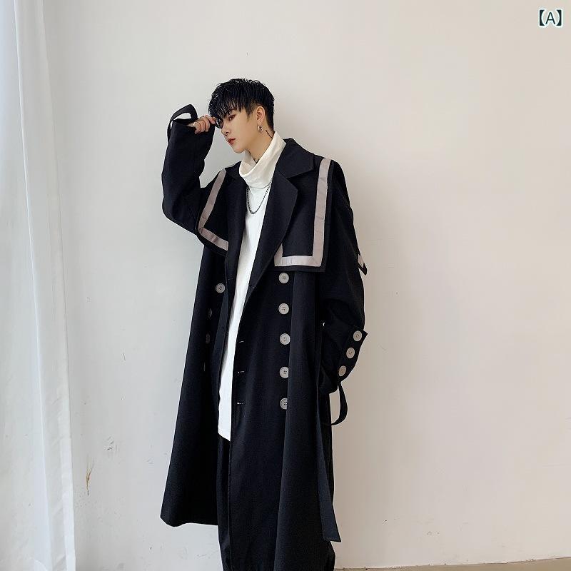 ・カテゴリ: コート・スタイル: 韓国・主な素材: ポリエステル・ネックライン: 襟付き・着丈: 100cm以上・ウエスト: ベルト付き・前合わせ: ダブルボタン・厚さ: 普通・柄: ストライプ・フィット: ルーズフィット・着用シーン: デイリー・対象: 青年層・ディテール: ステッチ・ポケット: サイドポケット・カラー展開: ブラック・サイズ展開: M、L、XL・性別: メンズ[詳細を見る]