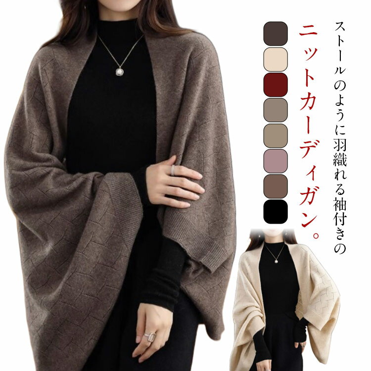 ストールのように羽織れる袖付きのニットカーディガン。 ドルマンスリーブ風のデザインで気になる二の腕やウエスト周りもナチュラルに体型カバーOK。 エレガントかつ女性らしい柔らかで軽量の素材感。 羽織るだけでコーデが決まり、厚すぎず薄すぎない程よい厚みで秋冬はもちろん、春先までロングシーズン活躍します。 旬のきれいめデザインで普段着~オフィスカジュアルまでヘビロテ◎サイズFサイズについての説明サイズ:70*13...[詳細を見る]