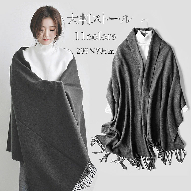 スカーフ レディース ウール風 厚手 両面 フリンジ ショール 保暖 エアコン対策 夏用 ブラック 通勤 普...