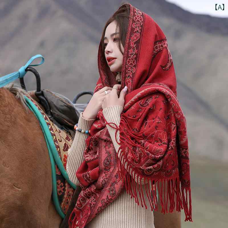 ショール レディース マフラー ストール ポンチョ 大判 保温 防寒 フェイクカシミヤ アクリル 民族風 エ...
