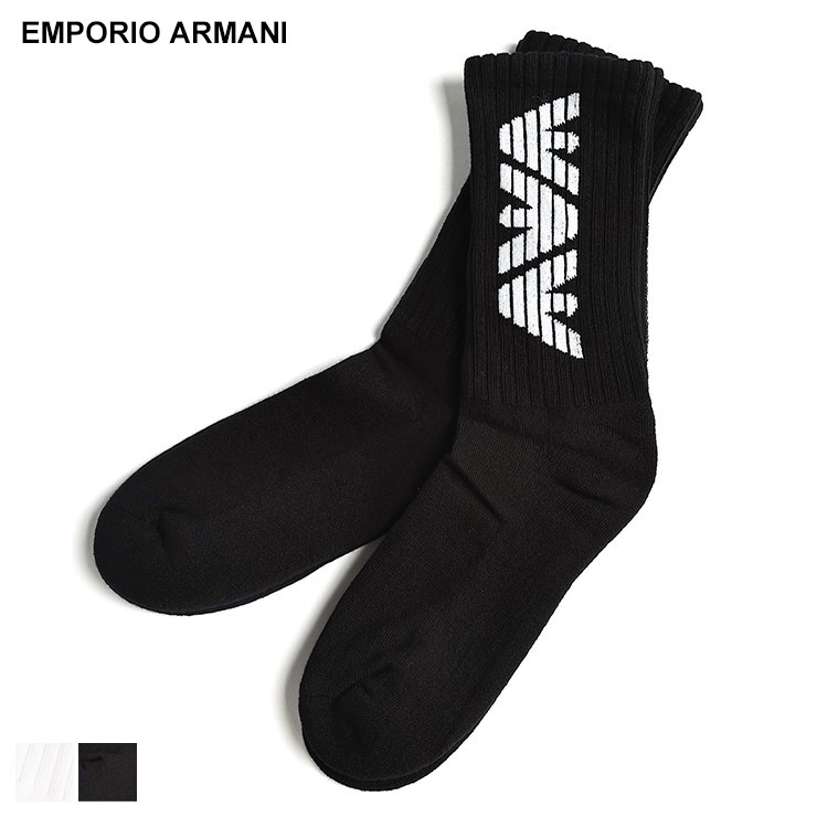 EMPORIO ARMANI (エンポリオアルマーニ) ロゴ リブ ソックス 2足セット EAU3031224F300 ブランド メンズ...
