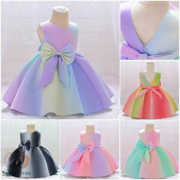 新生活 気楽 子供 女の子 ドレス 虹色 ワンピース 発表会 ベビー 子ども リボンドレス キッズ フォーマ...
