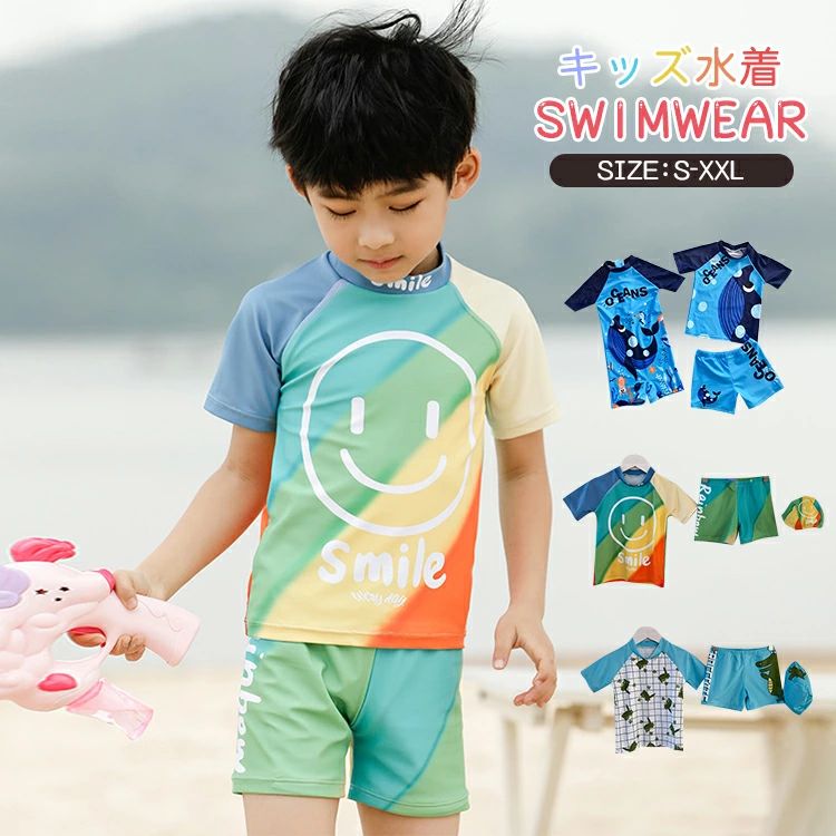 商品番号 kidswimsuit03 商品詳細 男の子 水着2点セット スペック ・組み合わせに迷わない簡単トータルコーデ! ・キッズらしい元気でCuteなプリント柄☆テンションUP↑ ・いっぱい遊べる!遊泳中でも動きやすい半袖ラッシュガード☆ ・長めの丈のトップスでお腹を冷やさない♪ ・膝上丈で涼しく快適ショートパンツ♪ ディテール ・しっかり裏地つき!透けずに安心な着心地◎  大切なお子様が着る水着!  安心・快適な着心地を考え...[詳細を見る]