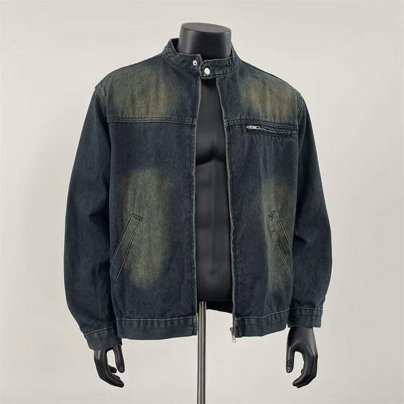 デニムジャケット 男女兼用 秋冬 レトロ 立襟 ルーズ ベーシック トップス ゆったりシルエット 合わせや...