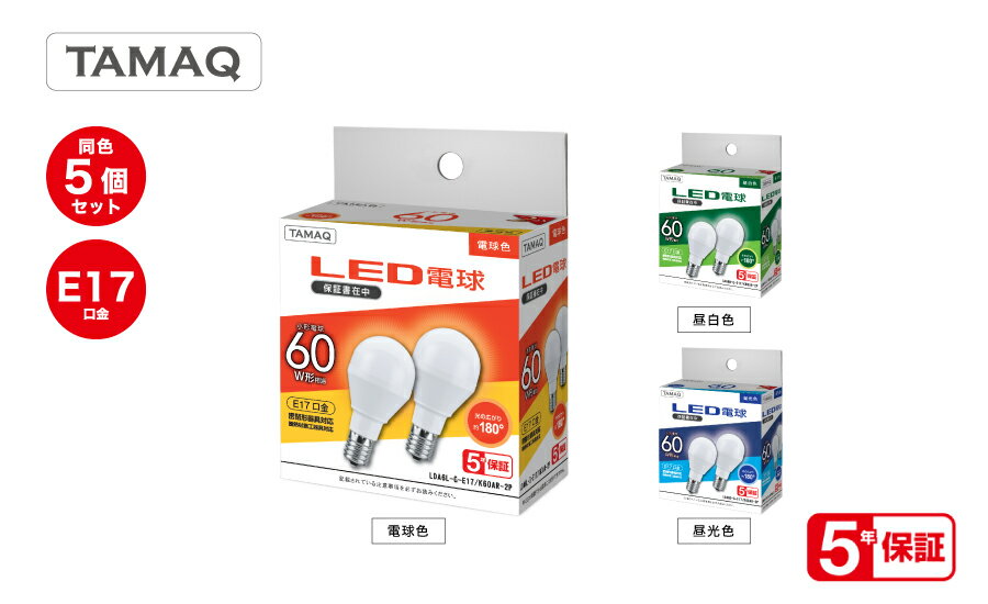NVCライティングジャパン LED電球 10個セット/2個入りx5個 E17口金 A形(小形電球形) 60W形相当 (電球色 LDA6L-G-E17/K60AR-2P) (昼白色 LDA6N-G-E17/K60AR-2P) (昼光色 LDA6D-G-E17/K60AR-2P) 密閉形器具対応 断熱材施工器具対応 サイズ:外径Φ40mm x 高さ81mm 重さ:34g/1個注意事項:モニターの発色により、実物と異なる場合がございます。[詳細を見る]