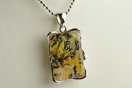 サイズ 2.7×1.9×0.6cm カルセドニーに、マンガンが沁み込み、樹枝状の模様を形成しています。芸術的な自然の造形と言えるでしょう。特に透明度が高い部分のみを選んでカットした、トップグレードのルースにシルバーを巻いてペンダントトップに加工しました。 ※ブラジル産 [詳細を見る]