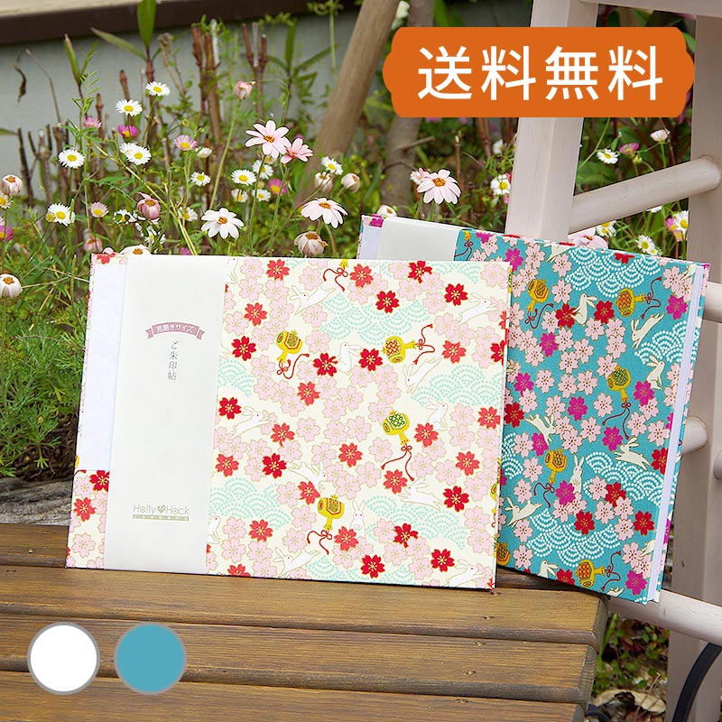 大判サイズの御朱印帳を横に2冊並べた大きさの見開き御朱印帳です。 近年、一般的な朱印帳2ページに渡る、華やかで大きな御朱印を授与する寺社も増えました。 当店の見開き御朱印帳はサイズの大きな御朱印を1ページに収められます。 一般的な朱印帳へ拝受する際の区切り(蛇腹の山)がなく、ご朱印の美しさをそのままに、書き手にも優しいご朱印帳です。うさぎや小槌、波模様など縁起の良い柄に桜が散りばめられた華やかでかわい...[詳細を見る]