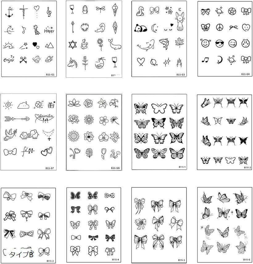 のりや専用液がいらない貼るTATOO。 お好きな位置にワンポイントで気軽に貼れるリアルな質感の消せるタトゥーシール。 貼りたいイラストを切り取って台紙を水で濡らすだけ! 顔や腕、足、背中など、全身にご使用いただけます。 使い方法: 使いたい絵を切り取る。 透明シールを剥がす。 絵柄面を肌に合わせ、軽く付着させます。 スポンジなどを使ってシートを背面から十分に濡らします。 15~20秒待ってから確認しながら裏紙を...[詳細を見る]