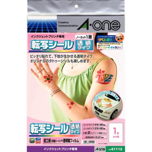 透明タイプ 材質:塗工紙+透明糊フィルム 標準総厚み:0.21mm A4判 ノーカット シートサイズ:A4判(210mm×297mm) ラベルサイズ:210mm×297mm(1列×1段) 対応プリンタ:インクジェット(染料)[詳細を見る]