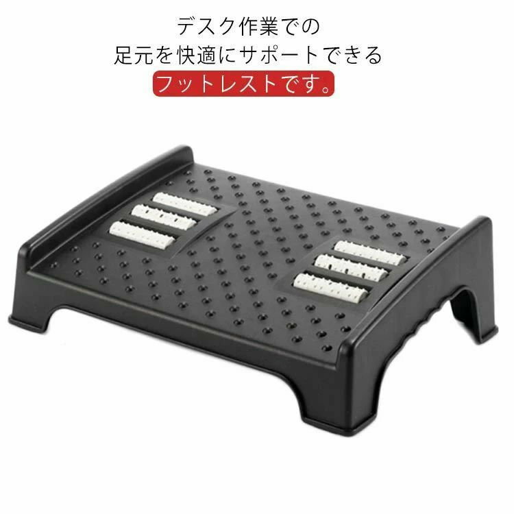 フットレスト調節可能な足置き角度・高さ調整可能滑り止めラバー付き(黒)