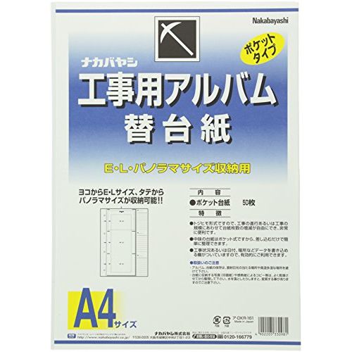 ●メーカー型番 : ア-DKR-161●台紙:L・パノラマ判兼用ポケット台紙50枚●透明袋●工事写真の分類・整理・保管や官公庁や施工主様への提出用にもご利用頂けます。[詳細を見る]