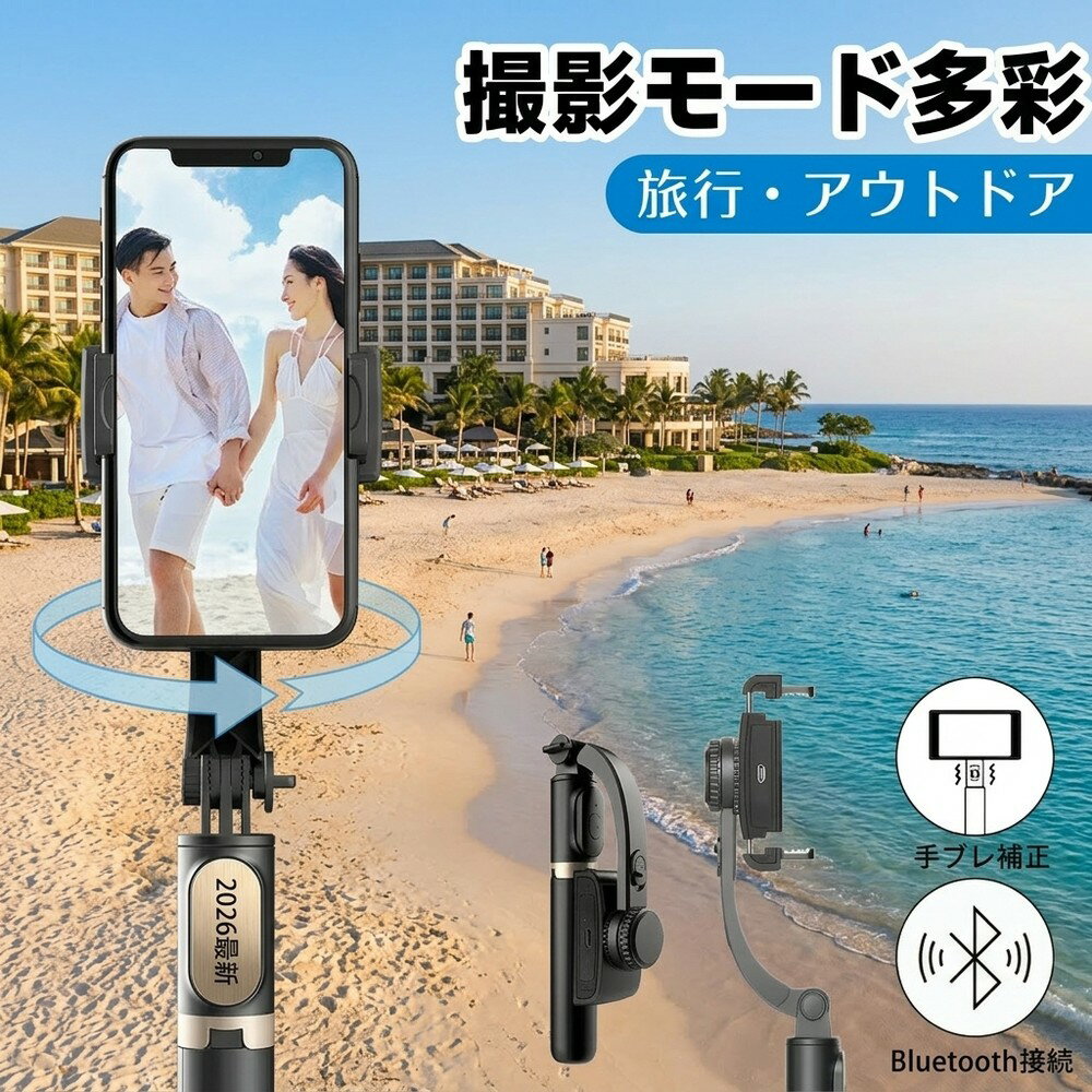 【スマホジンバル】 幾何美学と構造力学の巧妙な融合、知能安定機能、多機能無線遠隔制御(10メートル遠隔操作可能。軽量でいつでも良い瞬間を記録できます。7段階伸縮、多機能なスマートフォーン安定器です。 【安定撮影手ブレ防止】 360°回転、横でも縦でも斜めでも自由自在に角度を調節できます。 高品質ビデオと自撮り画像を簡単に撮影することができます。ゲームやイベント、旅行、クリスマスやバレンタインデーなどの日の...[詳細を見る]